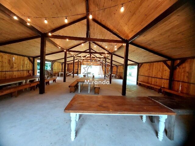 Magnífica propriedade, em área nobre, com acesso para um fantástico rio encachoeirado, ideal para lazer, casa de festas, casa de repouso, pousada e retiro, com 1.003m² de área construída e 104.245m² de terreno, composta por 13 qts. (sendo 11 suítes), sala, banheiro social, cozinha, cozinha externa com despensa, cozinha industrial, varanda, lavanderia, ferramentaria, piscina natural, sauna, lago, salão de festas com banheiro, salão de festas texano com 3 banheiros e garagem coberta.